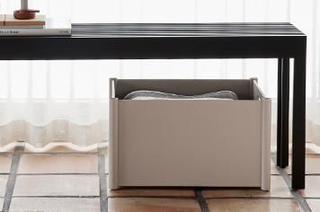 ピラー ストレージ ボックスは、Form & RefineのLeaf シェルフにぴったりと収まります。